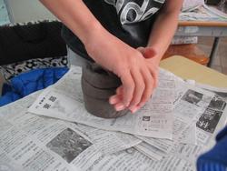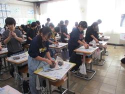 6年生は外部の先生を呼んで陶芸教室が行われました。