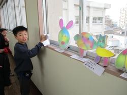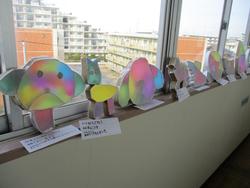 3年生の図工で「光サンドイッチ」が完成したので、窓際に飾っていました。