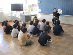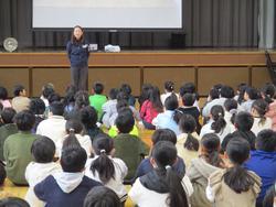 今日は給食の時間に松戸東警察署員が来校し、交通安全についてのお話をしていただきました。