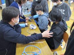 看護師や薬剤師、救急救命士のお仕事について説明を聞いたあと、体験活動がありました。