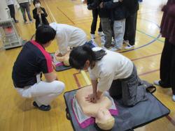 <胸骨圧迫体験>