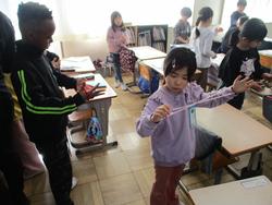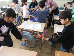 1年生が生活科の学習で昔遊びに親しんでいました。