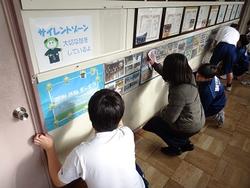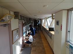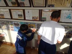 校長室前には部活動の活躍の様子を紹介する写真を掲載しています。