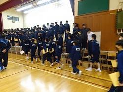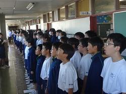 今年最後の登校日となりました。学年集会では、進行や体系など自らやりますと希望があり、学級委員が主体となって行われました。各クラスの反省や、冬休み中の過ごし方、学習について全体で確認をしました。