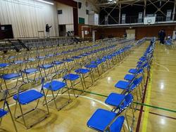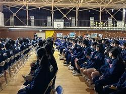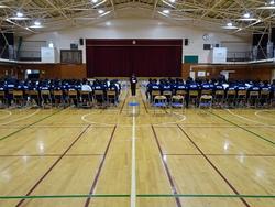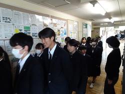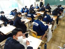 およそ80%の3年生が明日の試験に臨みます。最後には事前指導として検査日の動きを確認しました。