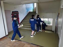 3年フロアでは受検をしない生徒たちが登校し、教室や学年フロアの片づけを行いました。