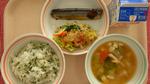 スパゲッティナポリタン、ツナサラダ、はくさいとハムのスープ、米粉抹茶チョコマフィン、ぎゅうにゅう | |