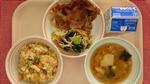 大豆いりツナごはん、豚の生姜焼き、かんぴょうのごまずあえ、みそしる、ぎゅうにゅう |