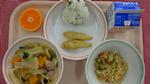 チキンカレーライス、チップスサラダ、フルーツポンチ、ぎゅうにゅう |