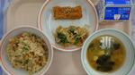 大豆入りツナごはん、生揚げのごまだれがけ、かんぴょうのごまずあえ、みそしる、牛乳 |