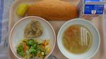 コッペパン、あじのハーブ焼き、海藻サラダ、かぼちゃのクリームスープ、牛乳 |