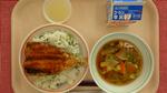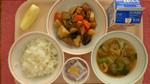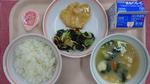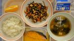 いわしと小松菜のスタミナ丼、根菜の味噌汁、なしゼリー、牛乳【千産千消献立】 |
