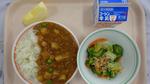 キーマカレーライス、ツナサラダ、りんご、牛乳 |