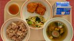菜の花ご飯、いわしの香草フライ、ひじきサラダ、みそしる、牛乳【千産千消献立③】 |