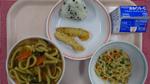 わかめおにぎり、カレーうどん、わかさぎのフリッター、ハリハリ漬け、牛乳 |