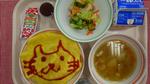 オムライス、はちみつドレッシングサラダ、ポテトスープ、一口ぶどうゼリー、牛乳 |