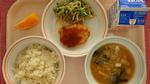 ごはん、わふうれんこんハンバーグ、コーンポテト、みそしる、ぎゅうにゅう |
