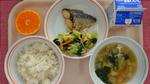 ごはん、さばのなんぶやき、こぶちゃあえ、みそしる、みかん、ぎゅうにゅう |