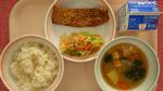 わかめおにぎり、カレーうどん、わかさぎのフリッター、ハリハリ漬け、牛乳 |