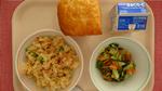 アップルトースト、クリームスパゲッティ、チップスサラダ、牛乳 |