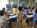 気温が上がってきました。外では日陰を利用したり、教室では空調を使ったりしながら学習を進めています。2年生は生活科でミニトマトの観察をしてカードに記録しました。隣のクラスは音楽で今月の歌「やまびこごっこ」で輪唱していました。1年生は生活科で学校探検。廊下の右側を静かに移動していました。隣のクラスは算数。担任の先生の他にほかにもう一人の先生が入って複数で見ています。