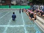 朝から青空で日差しが降り注いでいます。おかげでプールの水温も上がりました。1年生にとっては、小学校で初めて、2年生にとっては、2年生で初の水泳の学習です。低学年にとってはプールへ移動する前に大きな関門があります。着替えです。家庭で着替えるのと違い、公共の場です。脱いだものはまとめておくことも必要です。
