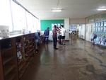 侵入があった教室の職員は不審者から児童を遠ざけるように対応し、その間に児童は侵入があったことを知らせ教室から避難します。侵入があったことを放送で全校に知らせます。応援の職員はさす股を持って駆け付け、他の教室はバリケードを作り侵入を防ぎます。