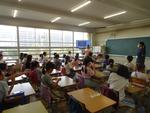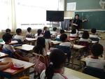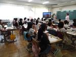 3年生はLATの先生とアルファベットの学習でした。カードを使って友だちとトランプの神経衰弱のようなゲームをしました。もう一つの学級は養護教諭の先生から体の清潔についての授業です。手の汚れ具合をブラックライトで見て驚いていました。
