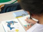 4年生は算数でした。~倍という表し方の学習中です。テープ図や数直線に表して考えていました。もうひとつ学級は、図工でした。校外学習で見学してきた飛行機を大きく描いて色を塗っていました。