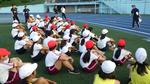 放課後、陸上部が松戸市の運動公園陸上競技場へ行きました。他校の代表児童と一緒に、市内体育大会に向けての練習をしました。学校の校庭と違ってトラックはウレタン舗装がされた400メートルトラックです。日本陸連公認トラックなので、気持ちよく走ることができると思います。今日の経験を大会当日に活かしてほしいです。学校へ戻ってからコースでまとまり職員がついて下校しました。