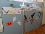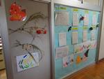 3組の廊下に10月に関係する言葉や生物についてまとめた掲示物が貼ってあります。9月中に先生と確認して書き入れていました。毎月、その月に関係する事柄を学習しています。職員室前の掲示物が10月バージョンに変わりました。ハロウィーンにちなんだものになっています。ススキも貼ってありました。