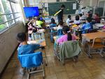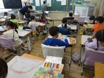 1年生が図工で大きな用紙に動物の顔を描いていました。写真をよく見て迫力のある顔をクレヨンで描いていきました。ライオン、牛、キリン等自分で選んだ動物です。伸び伸びとした絵になりそうです。もう1つの学級は算数でした。繰り上がりのたし算について、算数ブロックを操作しながら考えました。算数のノートをどんどん書き進めています。