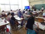 5年生は家庭科室でエプロン作りです。ミシンの糸掛けに苦心していました。6年生は道徳です。「修学旅行の夜」という題材です。自由について考えていました。