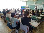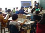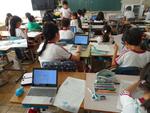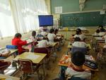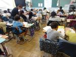 3年生は算数で復習プリントです。わからないところを先生に解説してもらっていました。4年生は社会科の新聞作りです。水に関連することについてまとめていました。