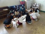 1,2年生の教室前で打ち合わせをしています。1,2年生の校外学習実行委員会でした。出発の会や到着の会の進め方を練習していました。各学年でリーダーとして活動する経験をいろいろな児童が経験できるように、先生たちは計画しています。