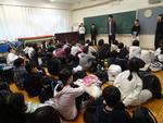 実行委員を中心に活動の目当てやルールなどを話し合って進めてきた修学旅行の当日です。欠席者はゼロで全員参加です。朝方は雨が降っていて地面が濡れていたので、プレイルームで出発の会をしてバスへ移動し出発しました。バスの中で朝の会をしてからバスレク係が準備していたゲームで楽しく過ごしました。おやつタイムもありました。