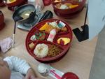 昼食場所では南部小の他の学校も昼食をとっていました。大きなおわん型の器に盛りつけられたお昼ご飯を頂きました。食後は、お土産の買い物です。今日は修学旅行生で大混雑でした。事前に買い物の計画をしていたので、迷わずに買えたようです。