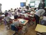 5日(水)に2年1組、7日(金)に2年2組で図画工作の授業を行いました。カッターナイフを使って作品を作る初めての時間です。事故やけがのないように、最初の段階で安全な扱い方を身に付けるために保護者の方にボランティアをお願いしました。お忙しい中来校して、カッターナイフでけがをしないよう声かけや持ち方・力の入れ具合などを教えていただきました。おかげでけがをする子は出ませんでした。2年生の子どもたちは、カッターナイフの扱いをどうするとよいか身に付けることができました。お忙しい中ありがとうございました。