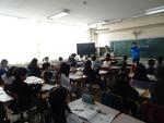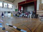 1年生は音楽集会の発表に向けて体育館で学年練習中でした。ステージ前にひな壇が設置してあります。6年生児童が設置してくれました。おかげで子どもたちみんなの顔がよく見える発表になります。2年生はLATと英語の学習中。色の発音を練習していました。
