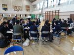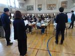 松戸市の先生たちが集まり、千教研の研修会を行っています。その中の国語部会の先生たちが南部小で授業を参観し研究協議をしました。6年生の国語「ぼくの世界、きみの世界」の授業です。教室では先生たちが入りきらないので、体育館での授業でした。6年生の児童はいつもと違う場所で、40人近くの先生体が参観する中でよく考え、書き、友だちと考えを伝え合いました。頑張る南部っ子です。