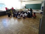 日曜日の雨は、思ったよりも降りました。南部小の校庭には、水たまりが残っていますが、青空と日差しが広がってきました。朝のモジュール学習の時間に、ボランティアの皆さんの読み語りがありました。教室を見て回りますと紙芝居、地球温暖化について、戦争中の特攻隊の話、「給食を食べに来ました」「はなげ」というタイトルの本などなど。南部っ子は集中して聞き、時には笑いも起きていました。