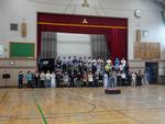 3年生は音楽集会に向けて体育館で学年音楽でした。当日発表する並び方で、2曲を練習していました。1年生は生活科で昨日外したアサガオのツルを丸くまとめてリースを作っていました。今度飾りをつけていきます。