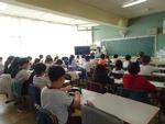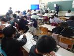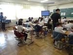6年生は図工室で電動糸のこぎりで制作中でした。木の板に下絵を描き糸のこぎりで切っていきます。テープカッターを作っています。もう1クラスは道徳でした。自分の家族について考えていました。5年生は理科です。川の水の流れについてこれから調べていきます。もう1クラスは国語で意見文を書きます。まずは、教科書の文や資料を確認していました。4年生は算数で作図をしていました。ノートのマス目をうまく使いながらかいていました。3年生はICT支援員さんにインターネットを上手に使うためにネットリテラシーを教えていただきました。