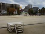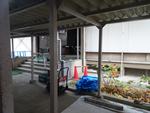 学校行事のため体育館を使えるように、2週間の間だけ体育館工事を止めてもらっていました。工事再開です。体育館入り口4か所の扉を付け替えます。