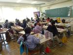 今日も作ってくださる方に感謝して、給食をもりもり食べる1,2,3年生の様子です。今日の献立は 厚揚げ入り豚キムチ丼 中華コーンスープ みかん 牛乳 でした。