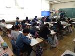 4年生は算数でした。三角定規やコンパスを使って平行四辺形を作図する方法をみんなで確認していました。もう1クラスは音楽室で合唱でした。二部合唱のハーモニーが響いていました。5年生は理科の実験でした。振り子の長さ、振れ幅、時間などの条件を変えて実験していました。もう1クラスは社会科です。運輸や貿易について考えていました。