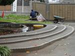 正門前の桜の葉がどんどん落ちてきます。用務員さんや始業前の朝の見守り方が清掃してくださいます。おかげさまできれいな正門です。
