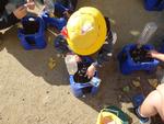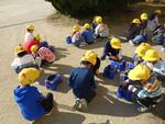 1年生は植木鉢に球根を植えました。チューリップとアネモネだそうです。肥料も埋めて水をかけました。1学期からアサガオを育てましたが、2,3学期は球根を育てます。