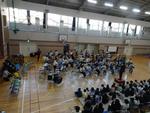 1学期から活動してきた、ブラスバンド部のミニコンサートを行いました。放課後、体育館で行いました。児童や保護者の方が合わせて100名くらい演奏を聴いてくださいました。全員での演奏は「海兵隊」「カントリーロード」です。パートごとに1曲ずつ披露しました。