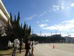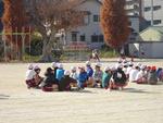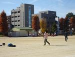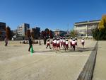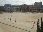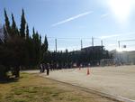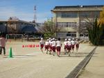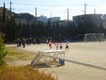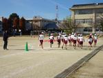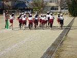 3,4,5年生が校庭で持久走記録会を行いました。2時間目から4時間目に行ったので、日差しが当たるとポカポカ陽気でした。